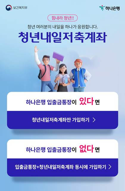 1. 하나은행 입출금 통장이 있다면 : 청년내일저축계좌 만 가입하기