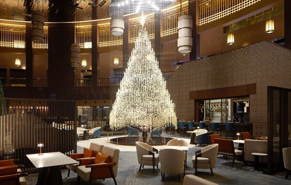 - 천장에 닿을 듯 거대한 크리스마스 트리가 로비에 자리해 연말 분위기 가득한 포토존을 제공