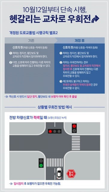 경찰이 22년 10월 12일부터 '사거리 우회전 일시정지' 위반 차량을 집중 단속이 본격적으로 시작된다. 횡단보도를 건너거나 건너려는 보행자가 있는데도 교차로에서 우회전하는 차량이 정차하지 않고 범칙금과 벌점이 부과되니 유의하시기 바랍니다.