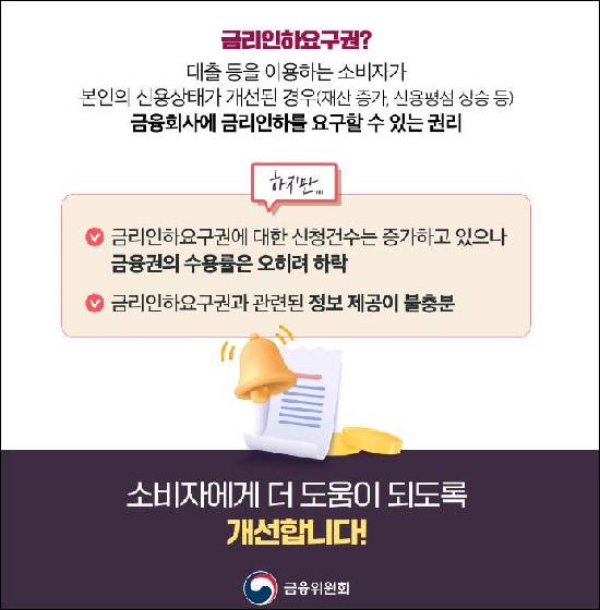 ※ 신용상태 개선이 금리 산정에 영향을 주지 않는 경우 금리인하 요구가 거절될 수 있음.