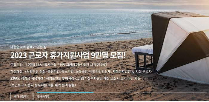 기업 내 자유로운 휴가문화 정착을 위해 추진하는 2023년도 근로자 휴가지원사업 참여기업 및 근로자 모집을 2일부터 시작했습니다. 올해로 도입 6년차인 근로자 휴가지원사업은 문화체육관광부와 한국관광공사가 근로자의 삶의 질 향상을 위해 휴가비를 지원하는 제도로, 매해 모집 시작을 시점으로 3~4개월이면 모집마감을 보이는 꾸준한 인기몰이의 지원사업이라 할 수 있습니다. 그래서 오늘은 근로자 휴가지원 사업, 휴가비 지원 총정리와 신청하는 방법까지 자세히 알아보도록 하겠습니다.