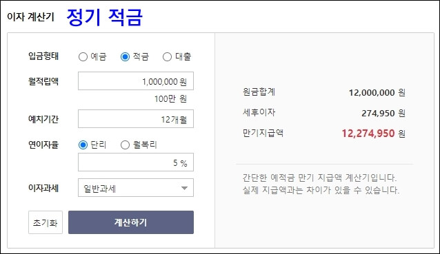 - 정기예금과 정기적금 이자는 계산방법이 다름